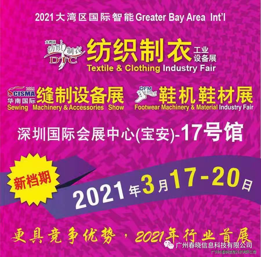 欢迎参观2021大湾区国际智能纺织制衣工业设备展DTC、华南国际缝制设备展SCISMA??星空科技将于3月17-20日在深圳国际会展中心(宝安新馆)举行,展览规模5万平方米,逾450家知名企业同台亮相,向业界展现当今世界纺织制衣制鞋最新智能技术及设备,响应国家双循环号召,与大家共同迎接市场复苏旺季。